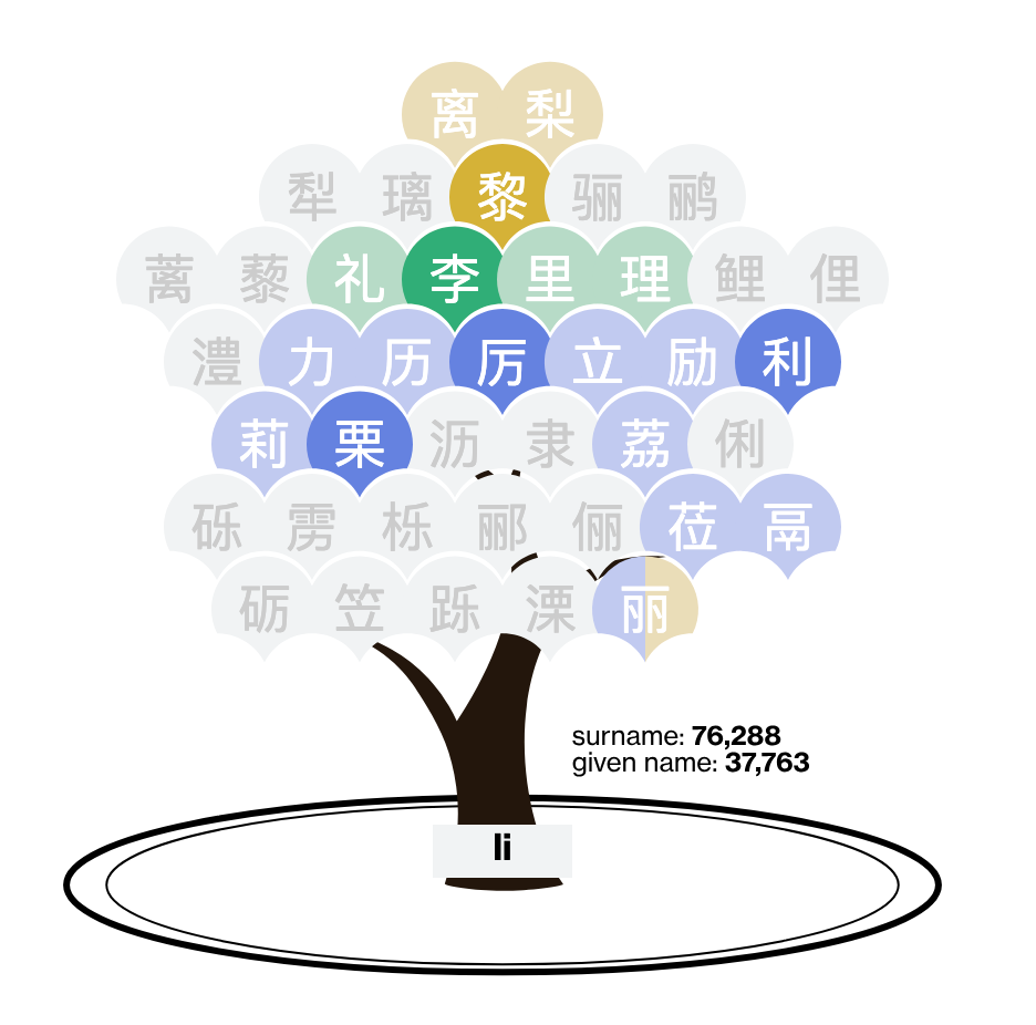 Returning to the "li" tree, let's analyze "Li" as a surname.