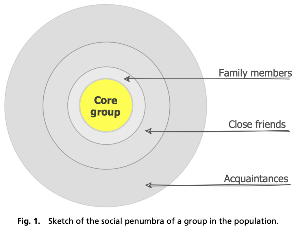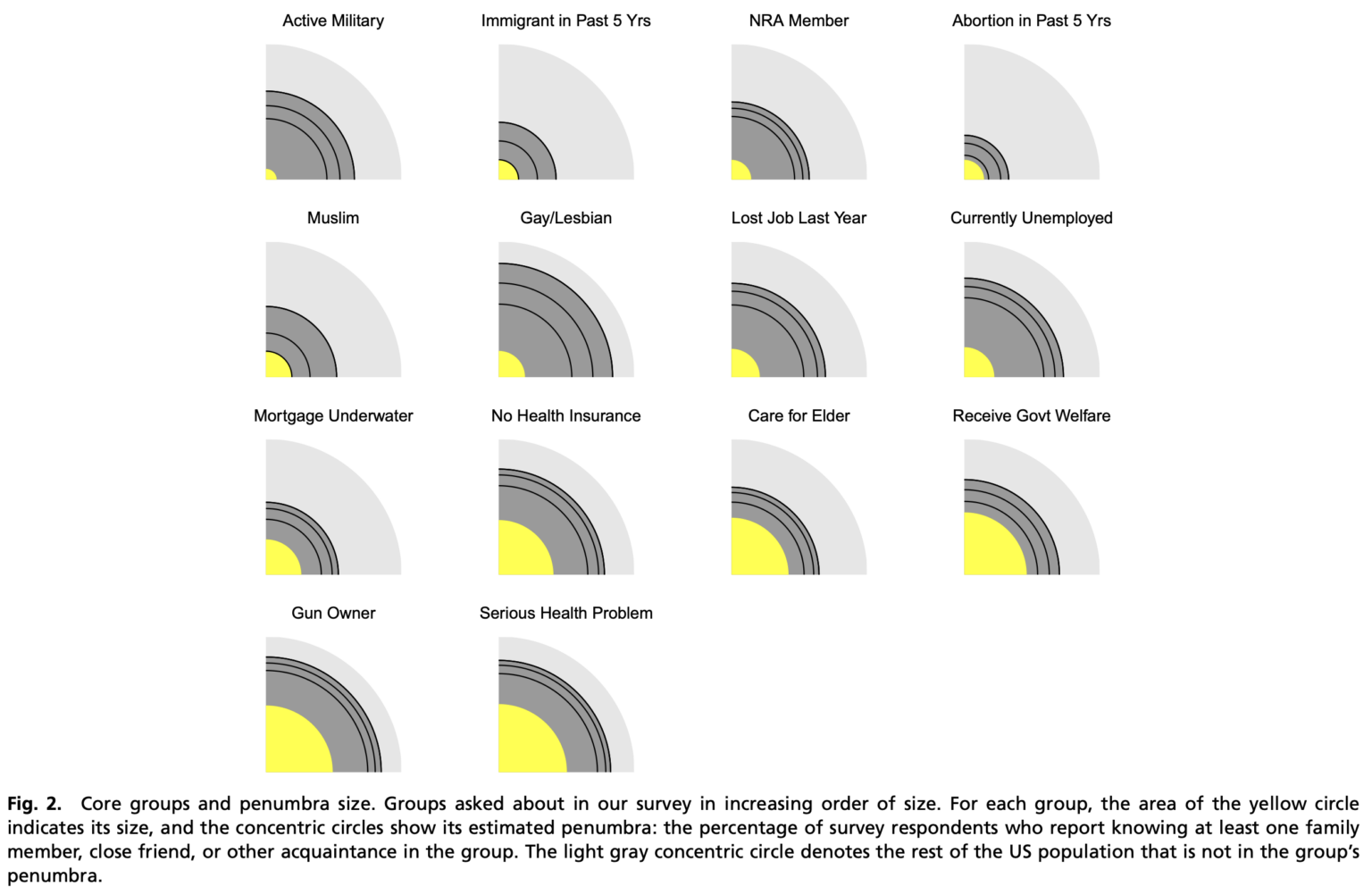 Andrew featured the following chart he made about the "social penumbra" of different groups of people: